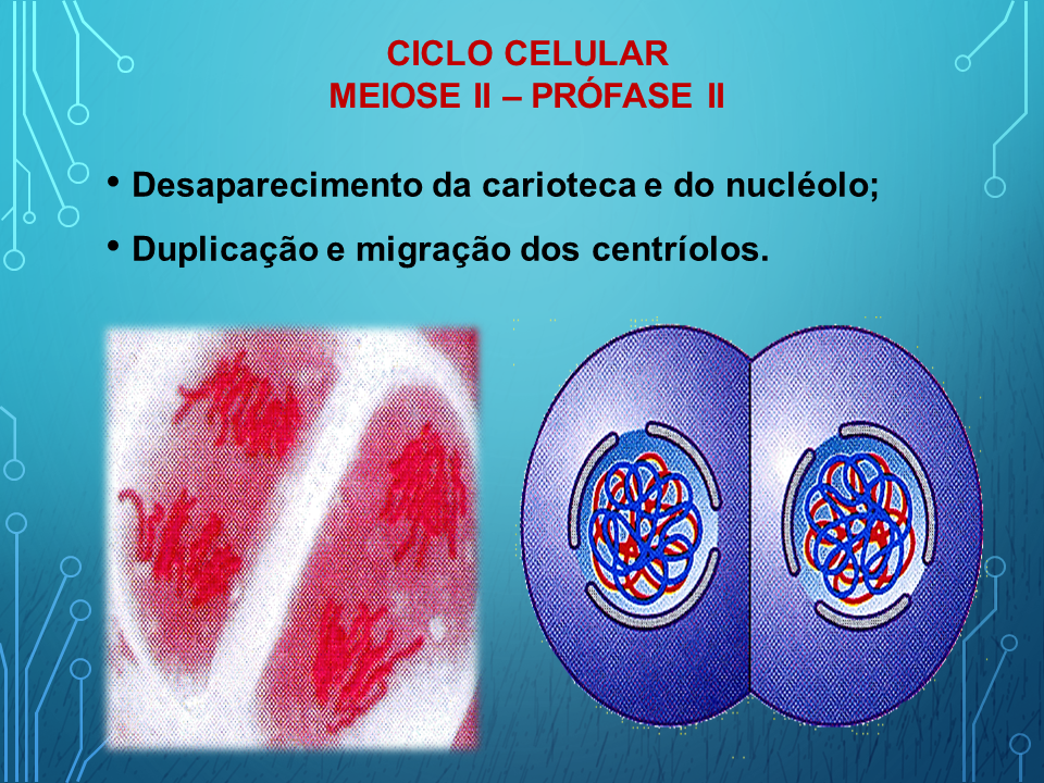 A meiose consiste em duas divisões nucleares sucessivas, designadas I e II. Cada uma destas divisões apresenta na sua essência as mesmas etapas que a mitose: